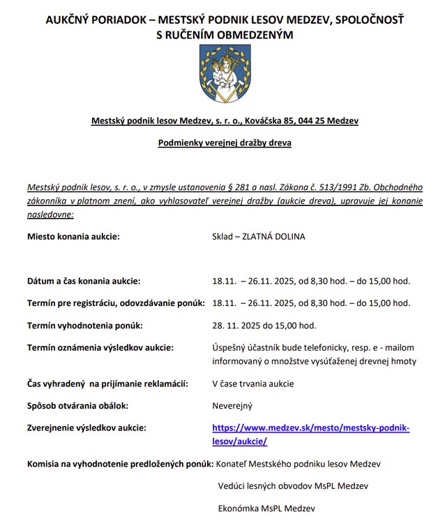| Şirket adı : | Mestský podnik lesov Medzev, s. r. o. |